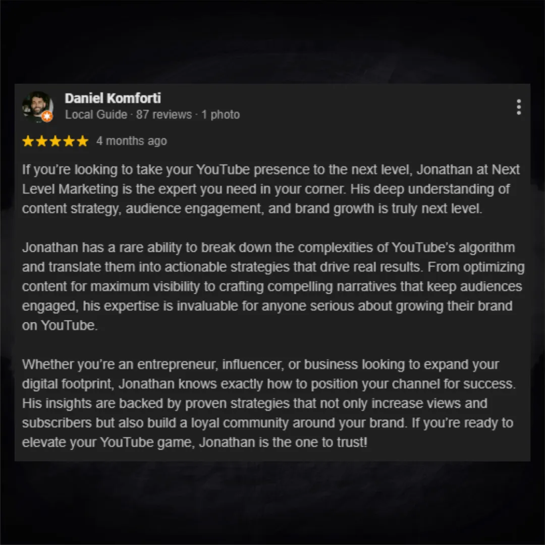 Jonathan is the founder of Next Level Marketing, a digital strategist and website optimization expert trusted by industry giants like Lowe’s, Olive Garden, and Organixx.
